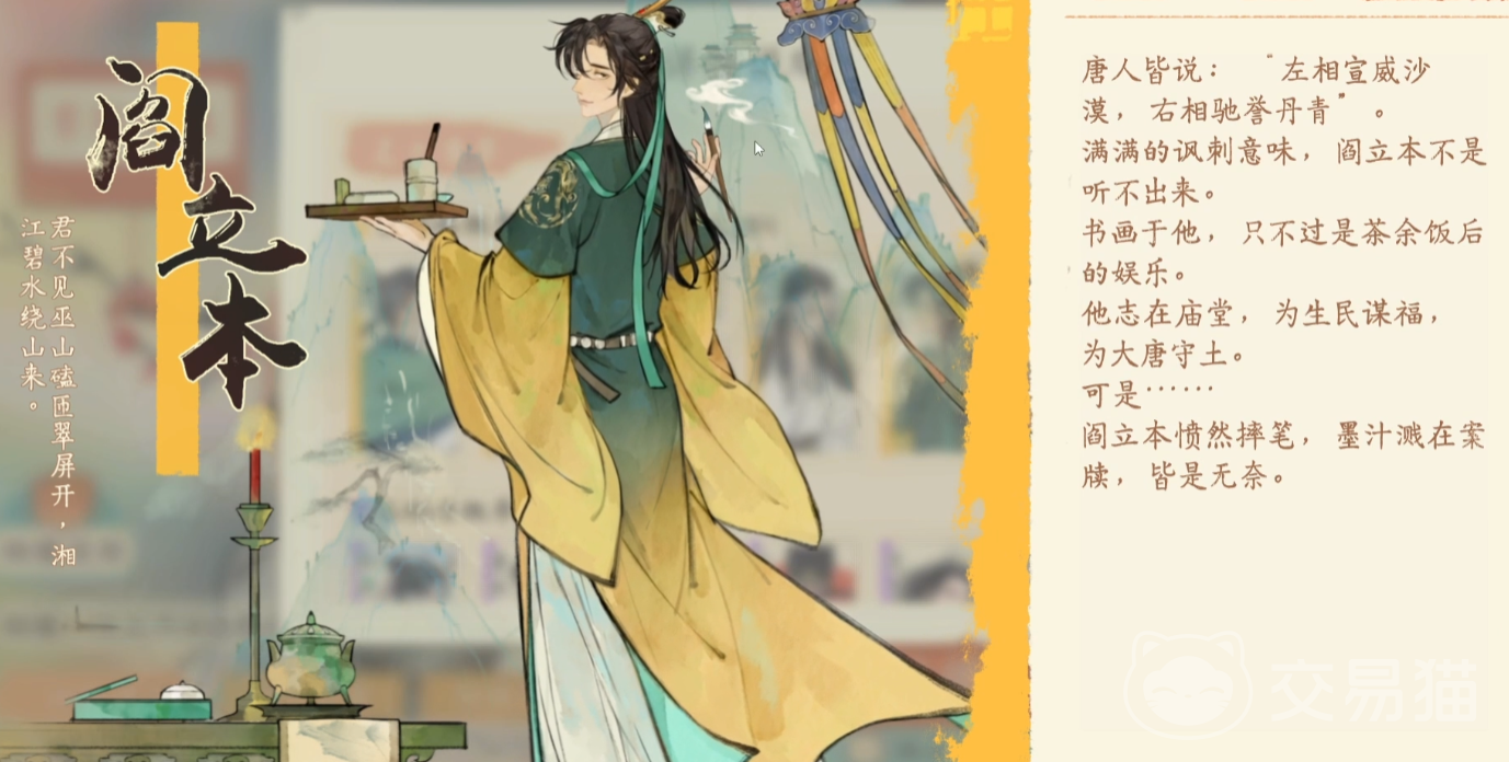 第四位是阎立本,他是历史上很有名的一位画家,同时也是一位政治家,阎立本在游戏中与辛弃疾一样,适用于棉麻、锦织和工艺类的生产,不过他的能力却有所不同,阎立本可以让工业类的建筑制造工期缩短,而且如果制作的物品工期达到一个小时以上的话,还可以让它的产量增加。