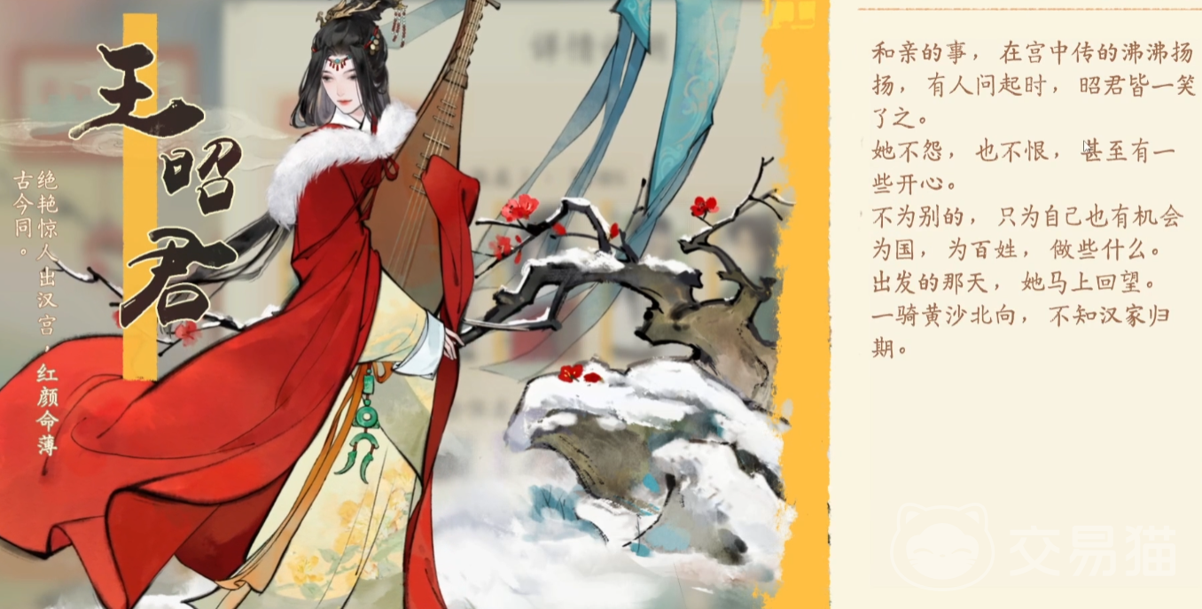 第三位是王昭君,她是古代的四大美人之一,王昭君在游戏中适用于田地、树林和养殖场的生产,并且在原料类建筑工作时,有概率可以立即建造完成,在建造开始生产之后,还可以返回一个居民。