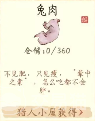 不过这里小编还要给大家说一个需要注意的点,如果捕捉到了猛兽的话,是需要兔肉来做饲料的,兔肉的获取方法则是在猎人小屋里面,只需要将巴蜀提升到七阶就可以解锁猎人小屋啦。