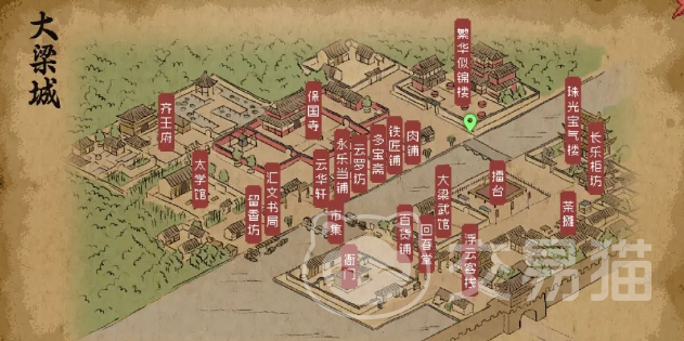 最后,我们来聊聊大梁城中一些更具文化气息的地点。繁花似锦楼是一个充满音律武学和古董乐器的地方。这里不仅有珍贵的音律书籍琴心剑意,还有蓝色品质的武学秘籍等待你去发掘。而太学院则是知识与智慧的象征,在这里,你可以获得一本制作龙须笔的图纸。这本图纸不仅是一件珍贵的收藏品,更可以用来制作一把顶级的武器——龙须笔。如果你对文化和武学有着浓厚的兴趣,这两个地方绝对是你不容错过的宝藏。