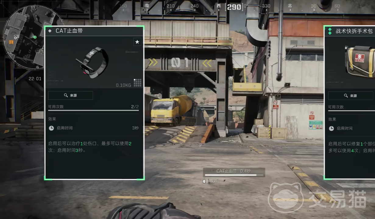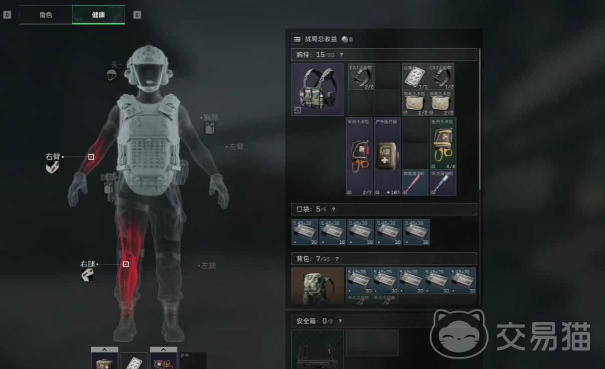游戏中的各个部位损失血量的数值也是不同的,手臂和四肢的损失血量数值比较低,但如果玩家被命中到了要害部位,例如胸部或头部,那么随着玩家不断前进, 血量会持续下降,如果玩家来不及使用任何的医疗器械,可以直接使用CAT止血带,止血带的启用时间非常短,可以暂时治疗住伤口,等待玩家脱离了战斗状态时,可以再次使用手术包来增强自己的状态。