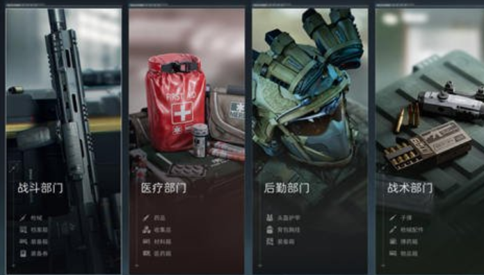 最后一个是后勤部门,它主要是让玩家在行动中能够了解装备的使用跟获取,并且还会帮助玩家了解各种装备的特点。其实它主要是提升装备意识,增强生存和作战能力。