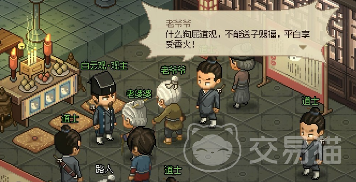 接下来,我们再来看看白云观的具体剧情和任务流程。当你首次来到楚襄城的白云观时,会看到一名中年妇女怒斥白云观无法保住她的婚姻,这时,一个老婆婆会建议她前往月老祠。这段剧情不仅为后续的月老祠任务埋下伏笔,还为玩家提供了重要的信息。接着,玩家会遇到两个老人,他们希望在白云观求子却感到失望,随后在路上准备购买无名道士的求子仙丹。此时,玩家需要果断介入,与道士对话并选择维护白云观的选项,这样就会触发战斗。只要你在战斗中成功击败道士,任务就会推进到下一步。