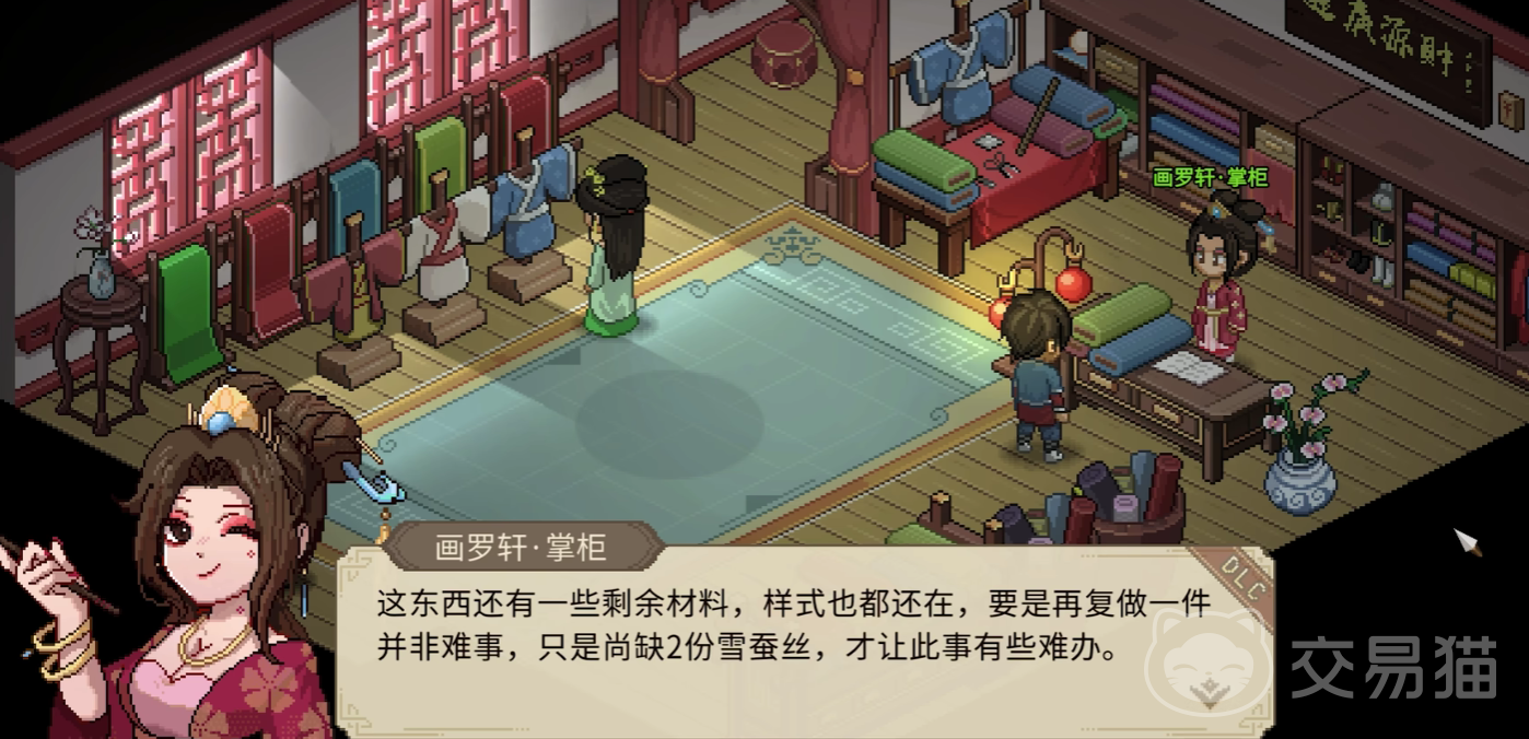 在游戏内雪蚕丝的用处基本上和纪茯苓进行绑定,玩家需要确认自己和纪茯苓结缘,并且拥有两个雪蚕丝,此时前往霖安城画罗轩就能够给纪茯苓制作衣服了,在制作了衣服之后,玩家需要找到纪太君最终确认两个人的婚约。