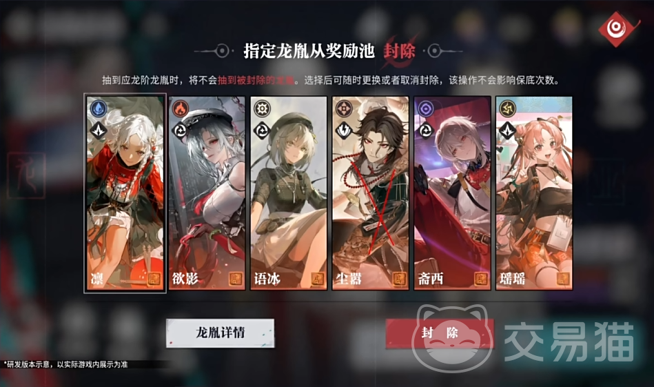4、封除:在抽卡界面有一个封除按钮,这个功能还是非常有用的。这个功能是让玩家在任意卡池里都都可以排除一个不会歪掉的角色。比如玩家没有在100次必的卡池抽卡,而是抽的大小保底卡池,那么是有很大可能会歪到其他的常驻角色里面去的。再有就是如果玩家本身九游一个角色特别的不想要,那么就可以用这个功能将其直接给封除。只要封除里面锁定了这个角色,那么玩家在抽卡的时候永远就都不会获得他了。并且这里也可以随时进行更换或者取消分组,也不会影响玩家保底的次数。简单来说就是相当于本身是六个当中歪一个,现在变成了五个当中歪一个了。