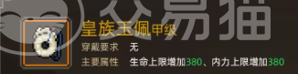 这第一件要带大家看的物品叫做皇族玉佩,该物品的属性为增加生命值、内力等多属性上限,效果为可以随意进出皇宫,获取方法为击杀或者是暗取康王获得。之后是第二件物品金饭碗,这金饭碗的属性为增加攻击力,效果为每次攻击敌人后不增加战意,但是增加连击值和命中率,获取方法则是,给炎城客栈附近的乞丐10贯钱后就能拿到。