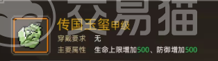 第五件物品传国玉玺,该物品的属性为增加生命值和防御力,效果为被攻击时必定格挡、攻击时必定暴击、在攻击后防御力和攻击力得到提升,获取方法为通过三个印章合成来入手,而这三个印章大家想要获取的话,那就需要完成无名渡口、九黎部落和燕云地区这三个区域的任务,完成后才能获得才能合成。