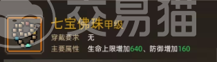 第八件物品七宝佛珠,该物品的属性为增加生命值和防御力上限,效果为按仁德数值减少伤害,每1点可以减少0.25的伤害,而在获取方面的话,加入释法寺然后获取4500的贡献值即可获得,或者是剿灭释法司进行获取。