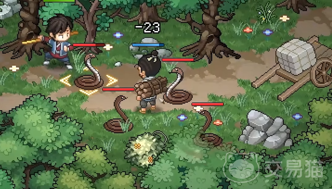 在游戏剧情之后我们可以获取到无名小村的线索。之后我们可以利用开局携带的道具来赠送给猎户,送到40好感的时候就可以了,这样只要他在我们附近发生战斗他就不会袖手旁观。这对于我们接下来拿灵知非常重要,接着我们返回来到右上角,记住这个时候猎户一定要跟在我们后面,然后向前走触发灵知,利用猎户将野猪给消灭掉。