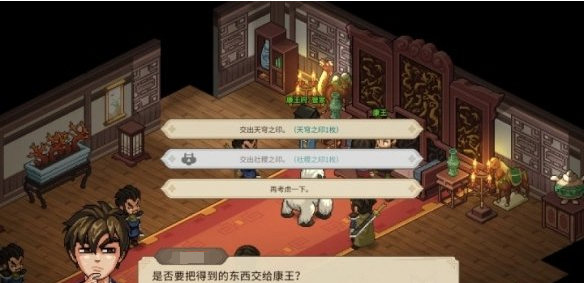 任意其中条件满足后,就去霖安城的衙门,和知府对话后,去康王府找到康王,和他对话后,他会需要一个东西,可以是”天穹之印”,”社稷之印”也行,这两个东西都有对应的获取途径。