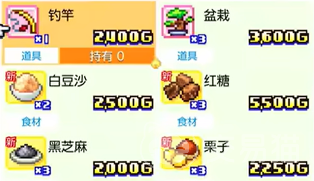 栗子铜锣烧:使用“铜锣烧面皮”加上“红豆沙”和“栗子”即可制作。栗子可以在“学校后山”找到,带有甜香的栗子搭配红豆沙,绝对是秋冬季节的首选。