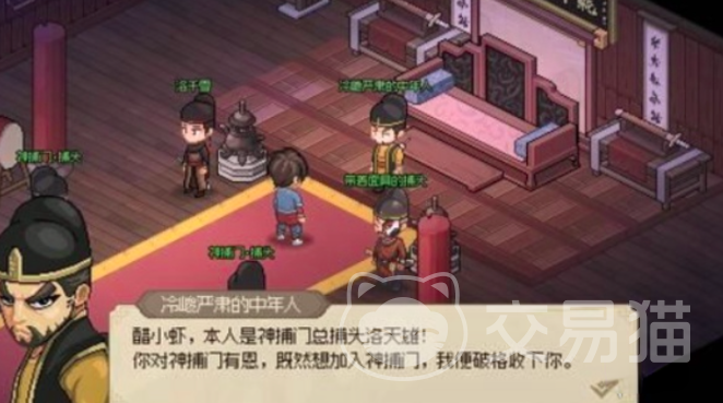此时就可以邀请洛千雪加入队伍,通过神捕门的单挑局就可以将裘补头引进到队伍当中。此时玩家还需要进行等级提升,在神捕门当中去练习站桩就可以将等级提升到25。与洛天雄这个NPC进行对话,获得点穴技巧。而要想触发后期剧情需要先将门派关系提升至30等级以上,解锁第一个任务,在任务考核当中成功击败四名门派弟子,这时候门派关系达到60等级后再解锁第二剧情,前往无名村的十里铺位置完成相关任务即可。
