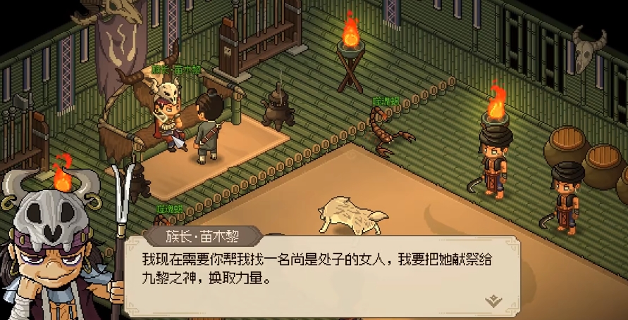 玩家需前往位于西南地区的九黎部落,这是获取九黎巫叉的起始点,在和九黎族长苗木黎对话后,就能成功的开启九黎任务线了,期间还会涉及到与妙音坊的冲突,因此大家需要小心处理。