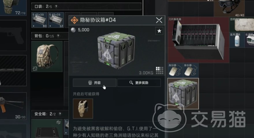 知道前3位对应的是:539,最后一位只需逐个试一试就好。因为每一句游戏内的密码是不一样,所以这里只是告诉大家这些密码的点位,以及对应的方法,大家知道后就可以去开协议箱了。D4协议箱中可以开出5级甲,例如价值接近四十万的FS符合防弹衣。
