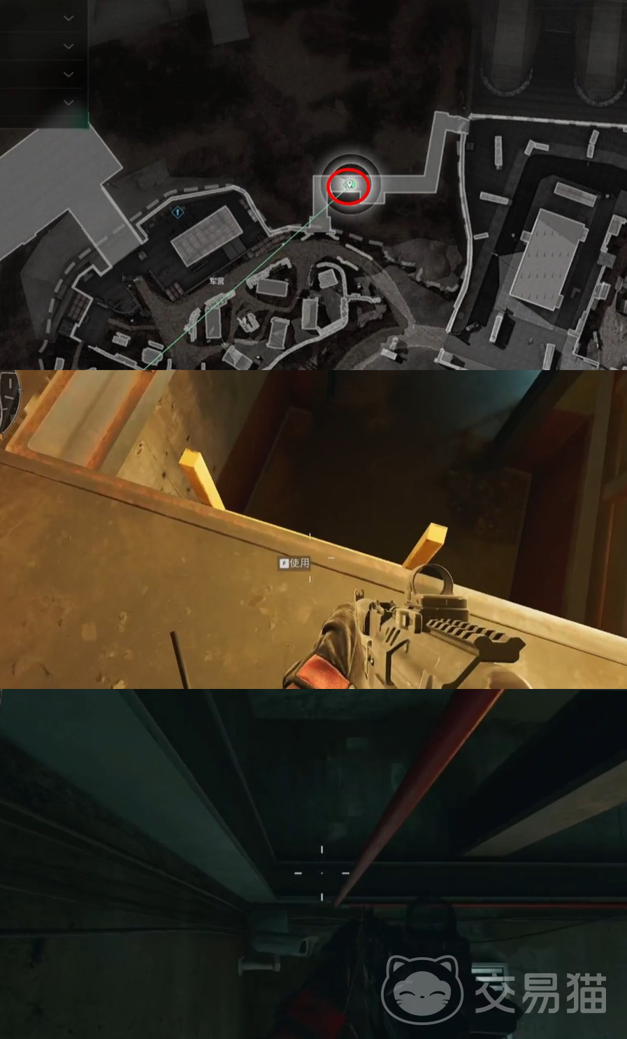 然后从地窖上来,将靠着岩石山体的建筑,将门踢开后,进门右转一直走,来到地图标点如下图所示的位置,在一旁管道的柱子上可以看到第二个密码,左边三个点,右边两条竖线,对应摩斯密码中的数字3。