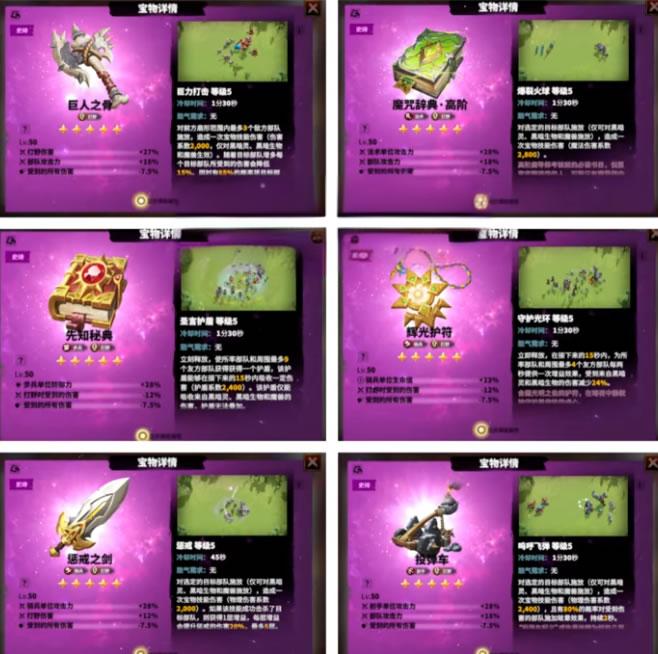 一些宝物肯能具备了特殊的能力而不是直接用于攻击;比如骤雨之箭,它能够将所率领的部队进行快速传送至30格内的任意空地,并附加提升伤害的狂热效果,在战斗中能起到出其不意的效果直接改变战场形势。所以在选择宝物时要充分考虑到这方面因素。