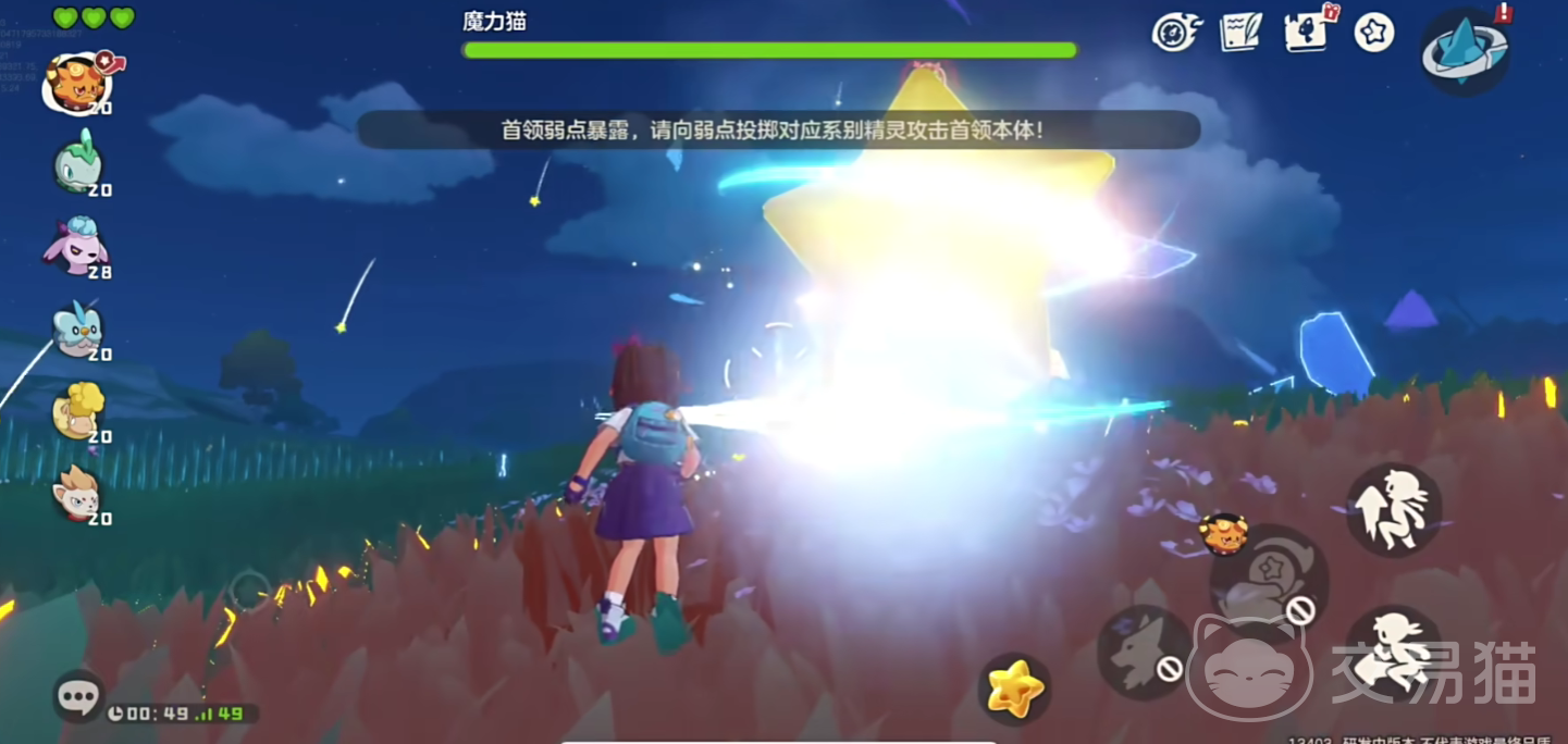 在游戏中,玩家需要完成主线任务的第一个章节,前往二十级怪物的刷新场地中才能够看到小咪这个角色,小咪也就是游戏中的魔力猫,如果想要触发魔力猫这个boss,可以前往平原之地,寻找到一颗星星,将自己的角色球投掷在对应星星上就可以触发魔力猫boss了,魔力猫对于火属性的攻击是有弱点的,此时直接使用火焰角色展开攻击即可,当然玩家也可以使用不同类型的技能来对对应的boss进行破防,和小咪的战斗总共会有五个回合,如果五个回合内并未击败对应对手,怪物会逃脱。