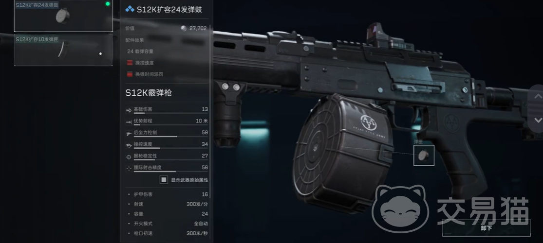 子弹数量对S12K至关重要,这把枪在近战中是火力压制的代表。如果你还在用普通弹匣,那就等着打到一半没子弹吧。改装时一定要选择24发弹鼓,虽然比普通弹匣重了一点,但大大增加了续航能力。在混战中,弹药量的优势是无法忽视的,尤其是在面对很多敌人的时候,子弹数量多些就能让你在换弹时不至于暴露破绽。