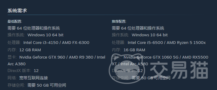 处理器方面最低要求i3-4150或者同级别的AMD处理器。运行内存需要12GB,显卡需要至少GTX960或者同级别的AMD显卡,值得一提的是在最近的更新中官方还加入了对集成显卡的支持。