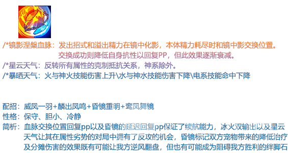 另外他的麟出凤鸣则是一个冰系魔法,用了后就能强化魔法攻击,若是天气改变的话就能增加固伤。若是自身精力不足,则能提升精力恢复效果。另外还能够召唤炎热天气,从而降低对方的双抗,此消彼长之下,对方自然无法招架。