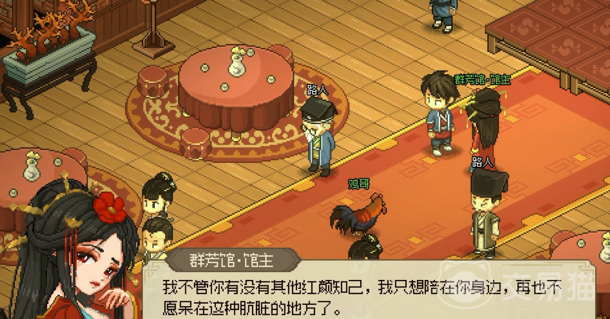 需要先来到群芳馆和馆主闲聊,询问她身世后一开始不会问出什么,但开始送礼将关系提满了以后,再次进行闲聊她就会给我们讲一个故事,并且告知我们明天的子时在凉亭等着我们,等到约定时间后前往凉亭就会进入剧情,通过和她的对话得知她并不是良籍,想要我们帮助她找知府大人回复,白天直接前往衙门处找知府对话选择脱籍,如果我们此时是普通人暂时就无法继续推进,但如果有任意其他身份,知府就会告诉我们一切都是康王安排的,我们找康王他会让我们找天穹之印,这个就在燕国大营大厅的桌子上,拿到后将印给康王,他就会解放馆主,再次找到馆主加入我们,她就会告诉我们她的真名并且可以前往结缘。