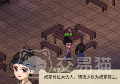 首先我们需要先前往长安客栈,进门以后会发生官兵勒索的事件,选择静观其变后角色海棠秋会出面周旋,然后我们就找海棠秋互动,在和他闲聊的时候如果花四娘在队伍里的话会有额外对话,提升好感度。