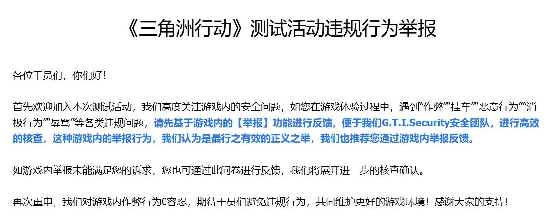 主要针对一些游戏内的不良行为进行举报,但要填写好相关的角色名称,并描述好该角色所进行的不良行为,好方便游戏快速定位到准确的角色并进行处理。