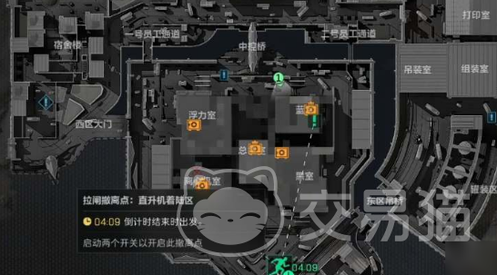 很多玩家并不了解具体所在的位置,第1个拉闸点比较好找,我们可以来到蓝市附近通往负1楼,在工厂下方就能找到。第2个在离心机室,进门之后左拐上楼,在走廊深处就能找到。此外拉闸点还有很多,只要找到两个玩家就可以乘坐直升机快速撤离。