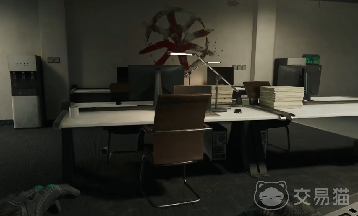 接着玩家们可以围着桌子看一下,有的时候会刷一些小物品,价值还是挺不错的。之后我们下1楼,1楼门口处就有一个储物柜,我们将其拿走,之后在旁边的办公室我们可以看到有一个机箱,我们也可以将其给拿走。