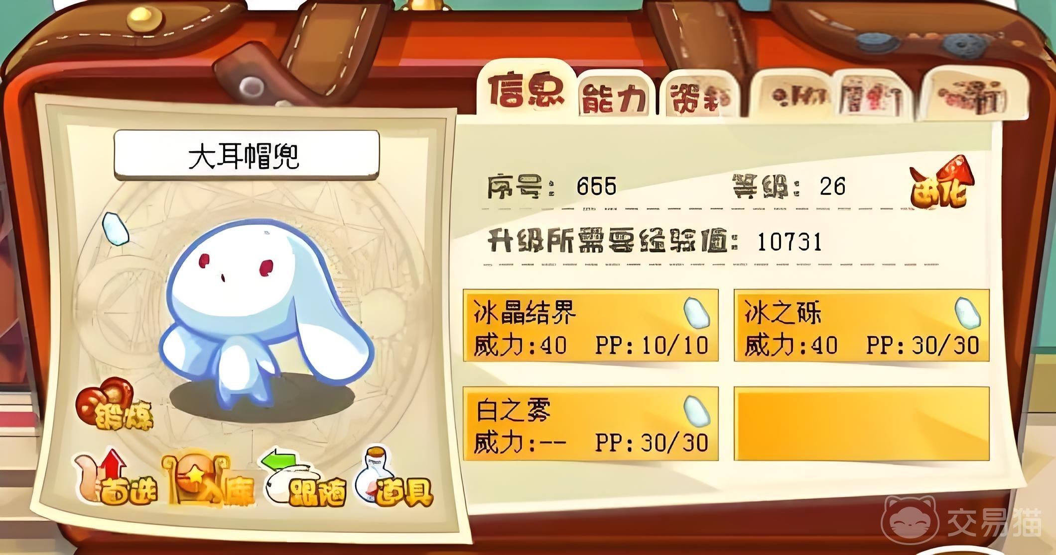 前面小编说了大耳帽肚兜是一种亲和力非常高的精灵,这种精灵其实并不适合在战斗里面使用,虽然这只精灵拥有着冰这个战斗力比较强的属性,但因为它的亲和力,建议大家在去捕捉精灵的时候可以使用大耳帽肚兜。