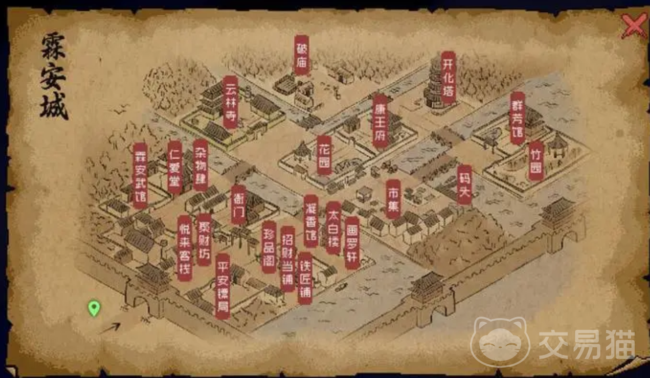在霖安城的门口有一个车夫在卖大梁城的地图,小伙伴们可以买也可以偷。如果在进城之前你的名声小于2,那么如果你想携带宠物进城的话,需要额外支付200文。进城之后找到公告版,在这里有一个谜题寻宝的任务,成功破解之后可以智慧加10和信用加6,并且得到一个羊皮碎片。集齐三个碎片可以获得一张额外的地图,并解锁乱葬岗的位置。