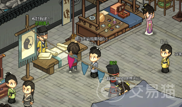 然后来到市集上,会遇到一个云游道人,同样是会强行触发对话,他会告诉你,你最近有血光之灾,小编在这里建议大家给他5块钱,这样就可以获得一个免疫流血的特性。当等级大于40,且名声大于5之后将会触发任务霖安病起,小伙伴们可以通过不同的选项来控制你与霖安城之间的关系程度。