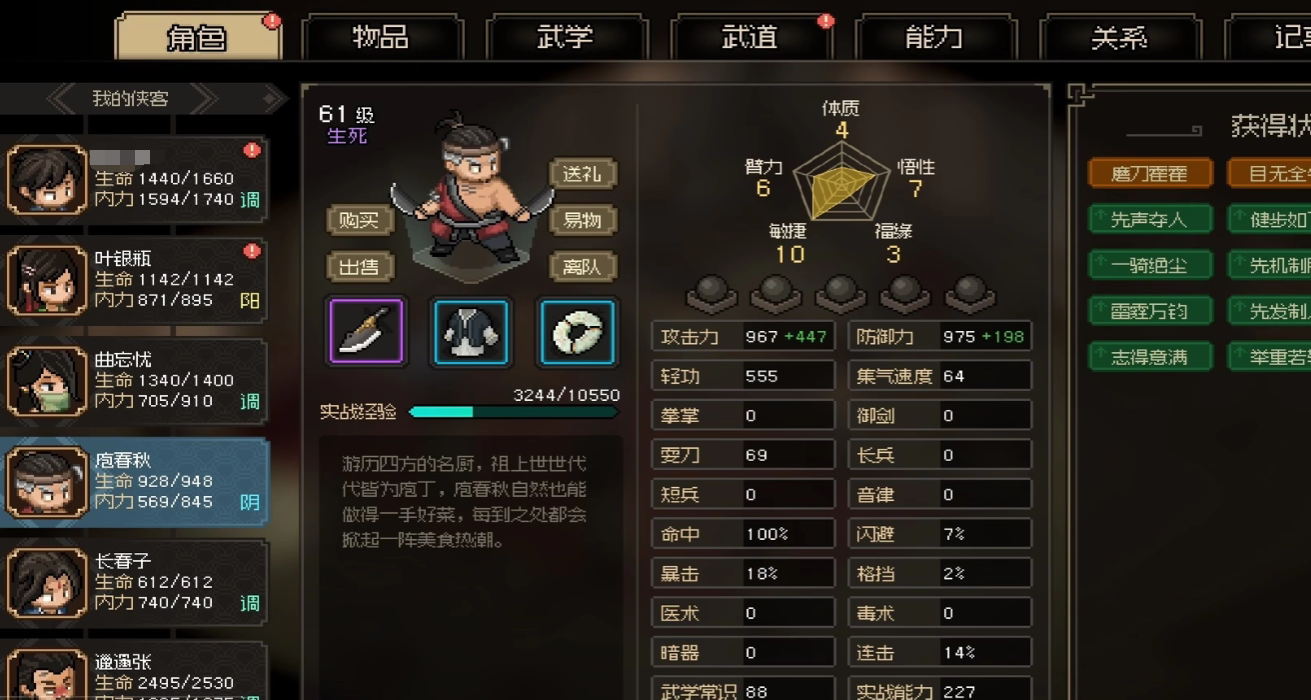 大侠立志传队友实战能力推荐 大侠立志传队友角色实战能力排行榜