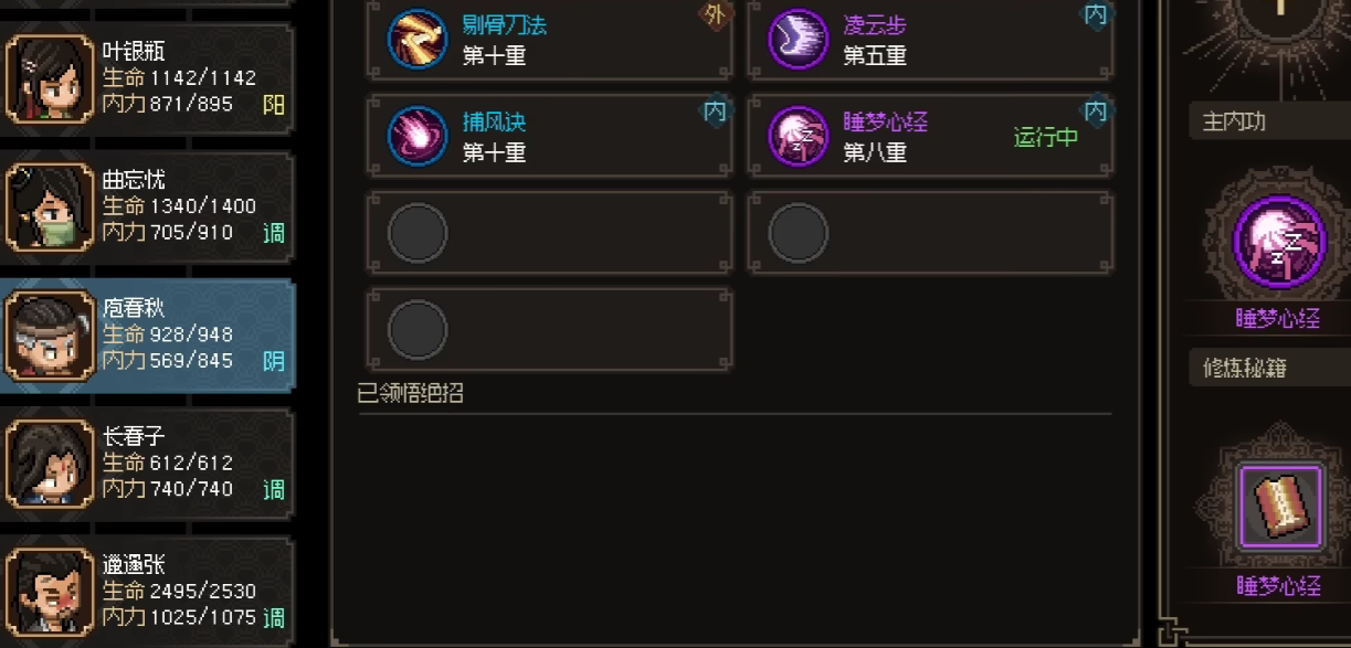 在前期,建议玩家搭配疱春秋和叶云,疱春秋是一个屠夫,可以在大梁城的卖肉店中进行入队邀请,叶云则需要玩家前往叶家军通过刷好感度来招募入队,进入到游戏中期之后,玩家就要尽可能的获得曲忘忧,曲忘忧有着超强的辅助能力,进入到游戏后期,玩家可以选择邋遢张,他有着比较强的输出能力。