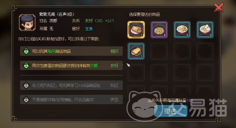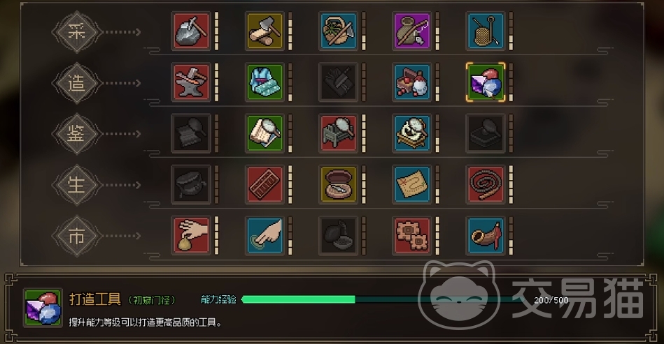在材料获取以后,大家就可去通过和游戏中的NPC进行互动来学习打造技能了,比如在霖安城的杂物肆找到杂物肆掌柜就能去学习打造工具的技能,通过提升好感度获得打造经验,而使用特殊道具玉玺不仅可以获得资源和金钱,还可以提升打造工具的等级,这个也是大家所需要去注意的。