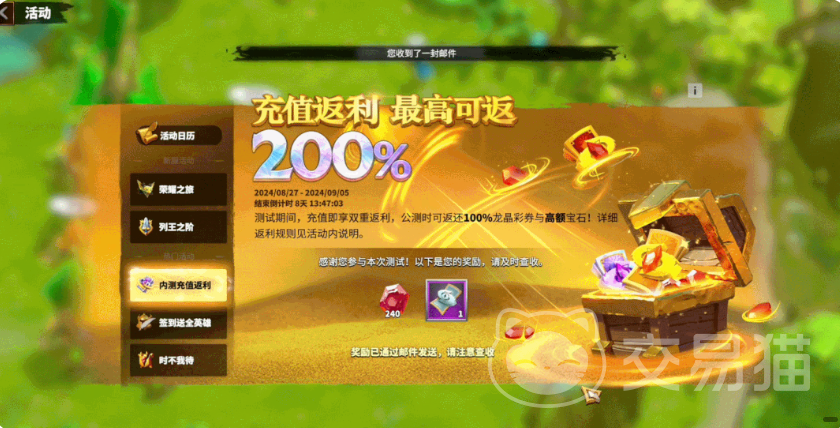 其次就是测试任务完成后,可以通过游戏内给到的对应的兑换码,在游戏正式上线之后,就可以通过兑换码去领取星火龙吟了,同时还有其他一系列的奖励,比如黄金钥匙,白银钥匙,甚至是两三个小时的加速时长等等。
