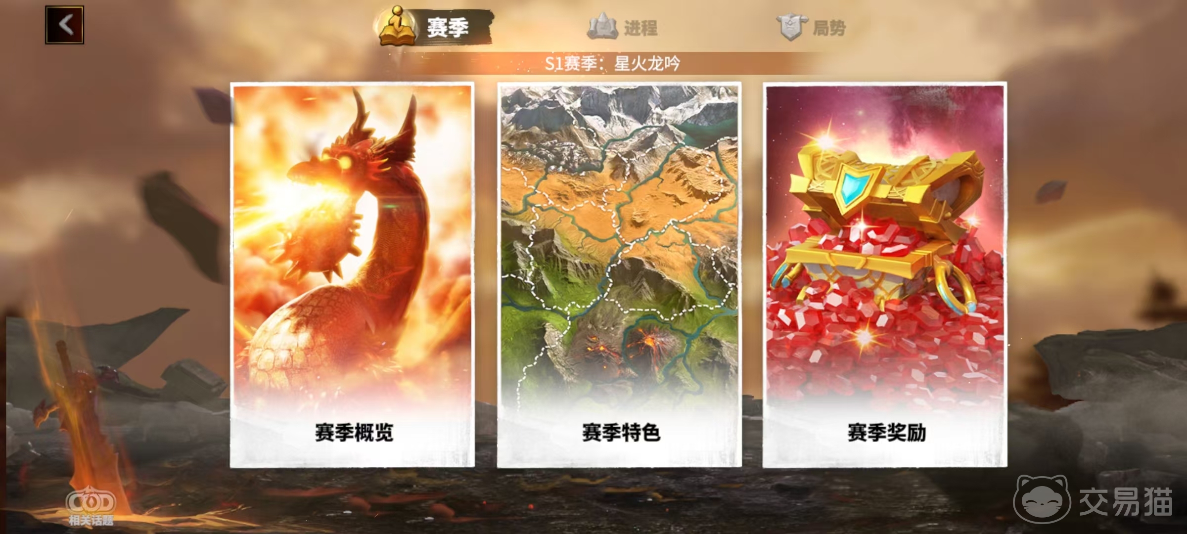 大家在建造基地的初期就可以直接放下预言石碑,它不能和其他建筑物一样升级,但它所提供的功能是和大家的赛季奖励息息相关的。在进入预言石碑后,看到赛季、进程和局势这三个主要选项。在赛季选项中又分为赛季概览、赛季特色和赛季奖励,因为游戏采用的是赛季模式,玩家需要在一个赛季中努力进行发展,这样才能获得更多的结算奖励。在赛季中可以查看到当前进程情况,以及当前赛季特色和所能获取的奖励。尤其是赛季特色,包括奇观、关卡、村庄、魔兽等,更是帮助大家了解该赛季的重要途径。