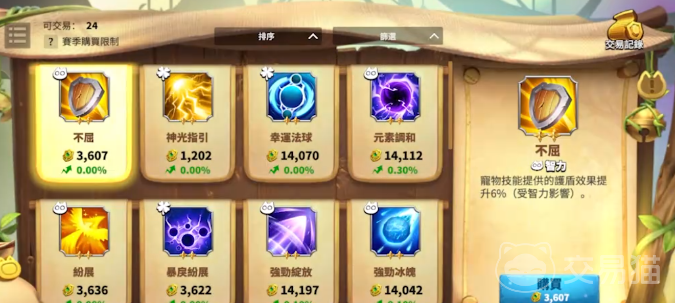 元素调和:宠物释放技能时候会造成魔法伤害,暴击,概率提升20%,提升的概率还会受到智力影响。
