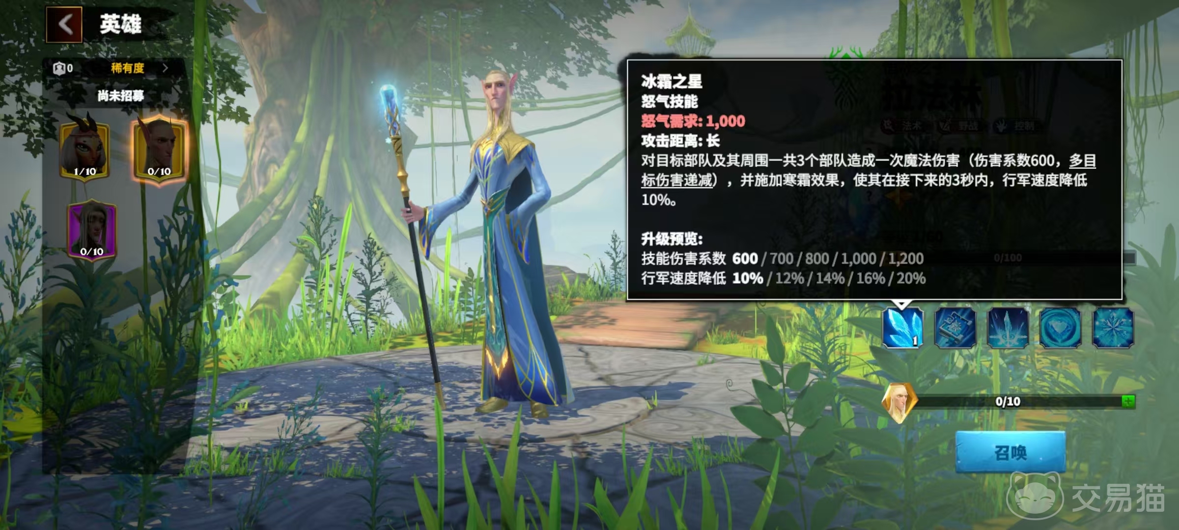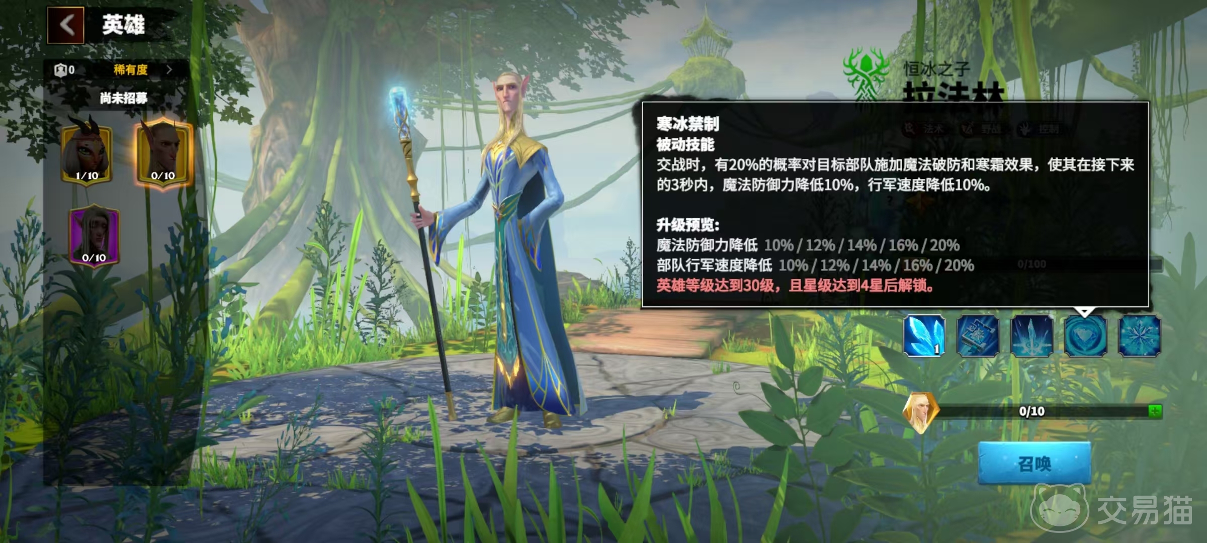 拉法林在游戏中的称号是恒冰之子,他是一名法师英雄,怒气技能冰霜之星,能够对目标及其周围三个单位造成魔法伤害。目标越多,伤害递减越高,并施加寒霜效果,接下来的三秒内对方行军速度降低,通过提升技能等级,伤害系数最多能达到1200,速度降低效果能达到20%。不仅伤害可观,造成的速度降低更是使对方行动受挫,方便我方进行各种移动和拉扯。所具有的被动技能包括穷妙极巧,严酷寒意,还有寒冰禁制,能够在交战时有概率使目标部队施加破防和寒霜效果,降低其魔法防御能力和行军速度。以及被动技能冰曜,释放怒气技能时,使拥有寒霜效果的目标部队额外受到魔法伤害。