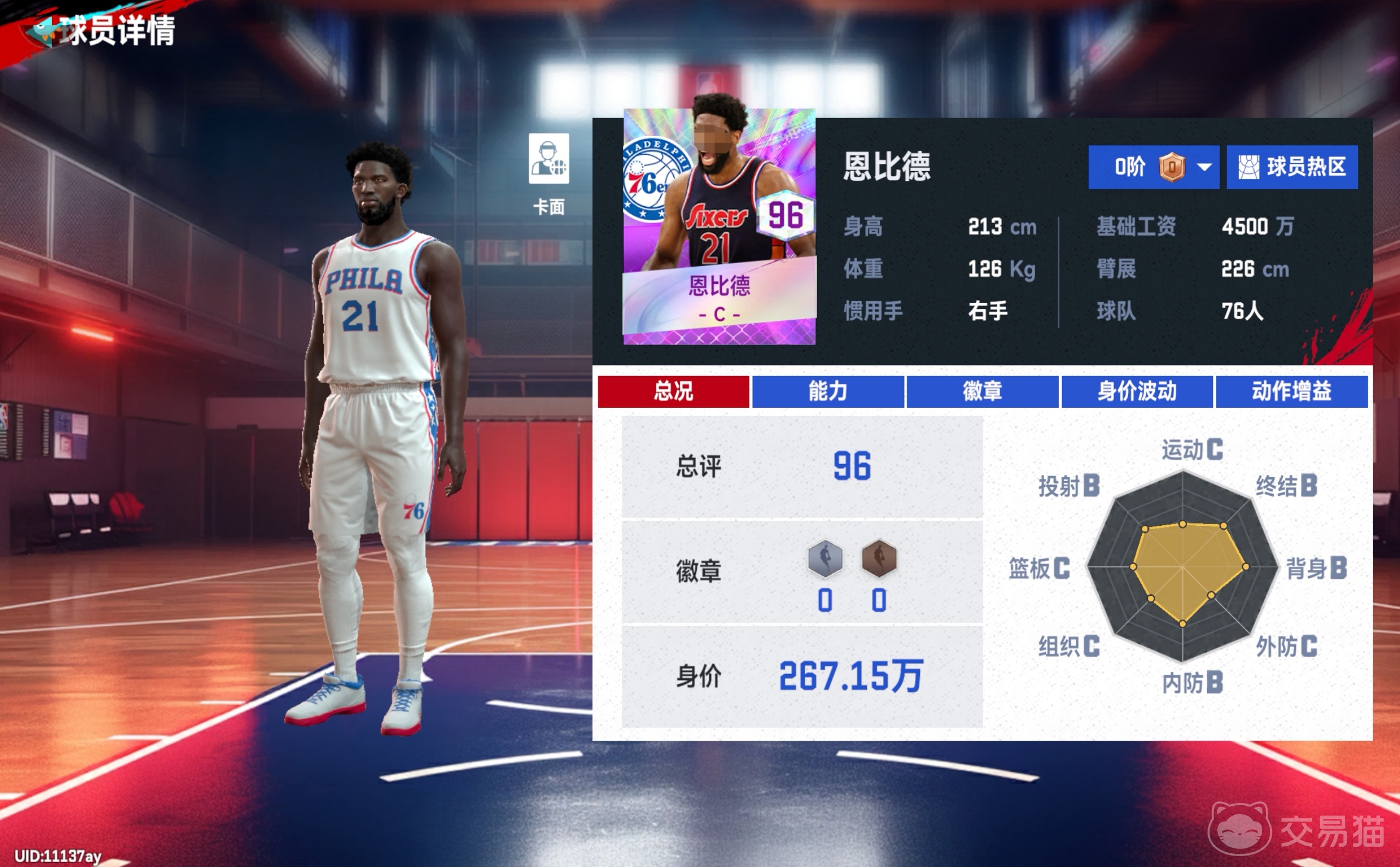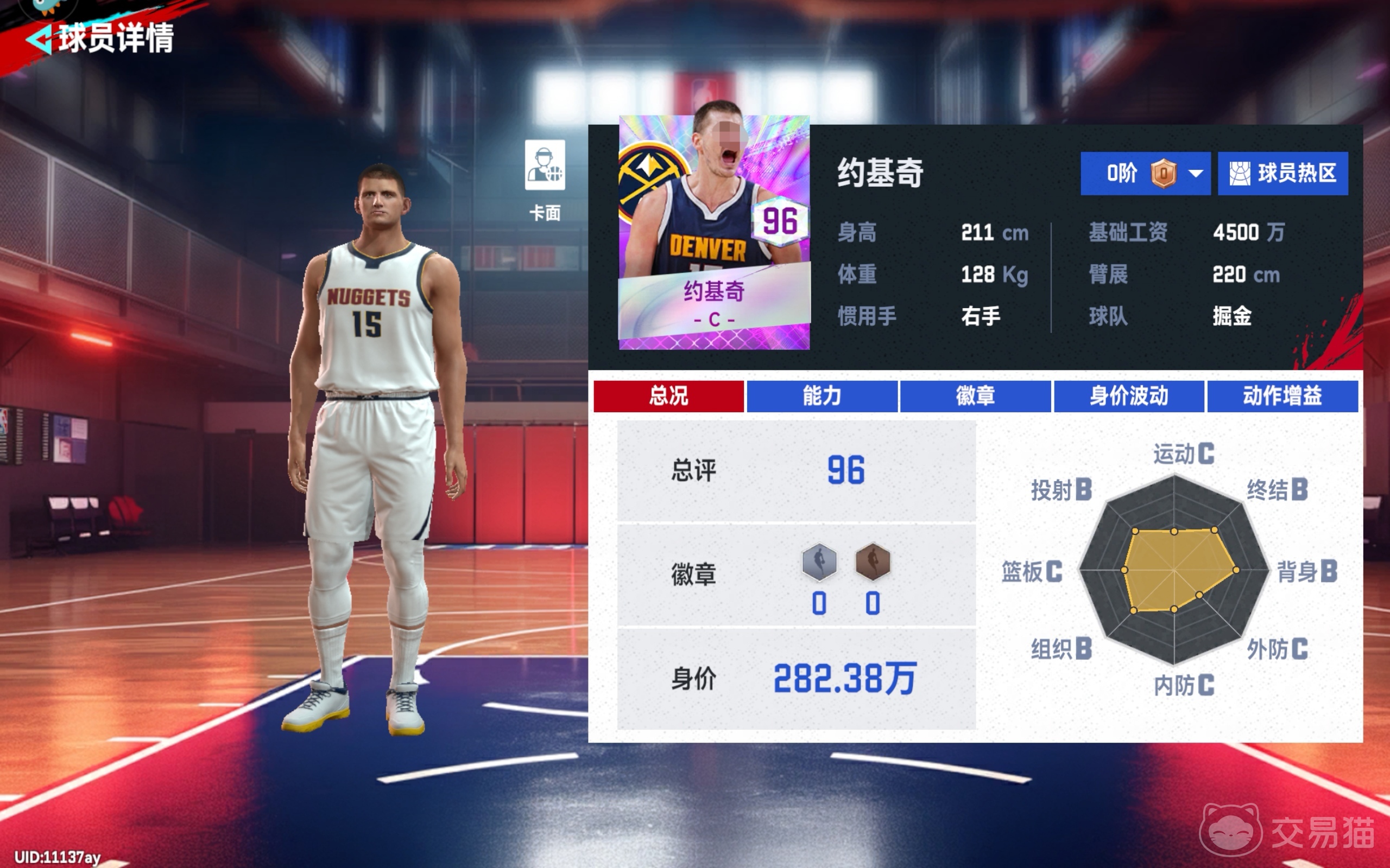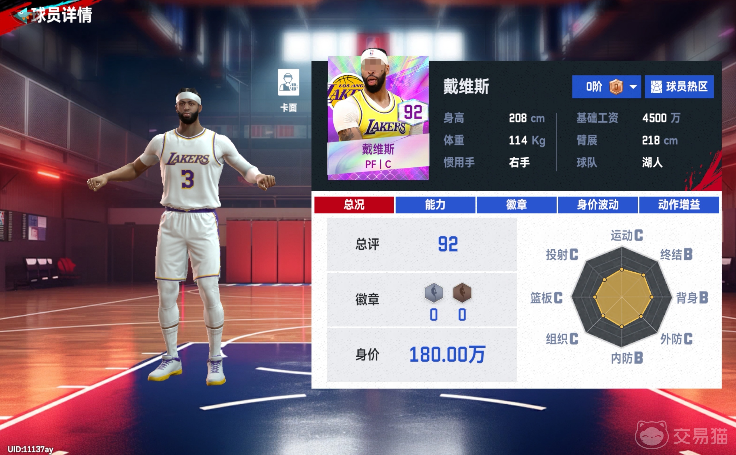 与其他同位置的球员相比,他的身价相对亲民,仅为294.69万,具有较高的性价比。各项基础属性也十分均衡,接球94分,力量91分,这使得他在篮下能够快速完成得分,并且在对抗中能有效利用身体优势,后期携带徽章后效果会更好。