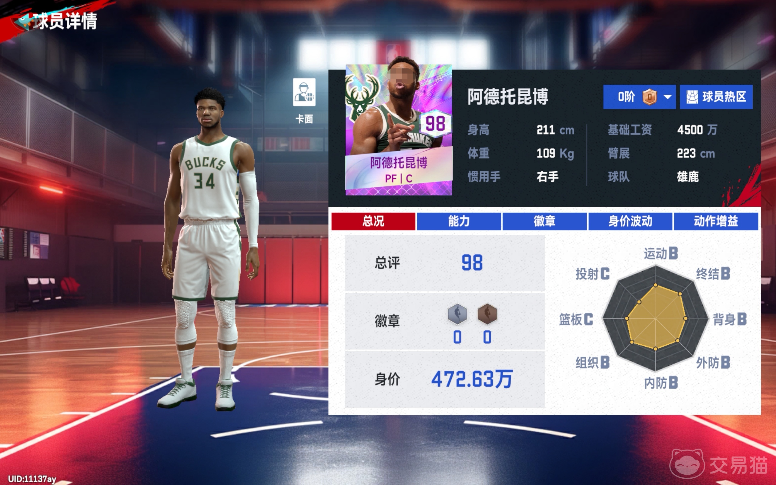字母哥在游戏内堪称六边形战士,其篮板属性和防守属性非常出色,这使得他在争夺篮板球以及防守端都能有卓越表现,比如能够有效地限制对手的突破,给对方的进攻造成巨大压力。不过,字母哥的投射能力相对较弱,如果机会不是很好,玩家需要谨慎地出手。