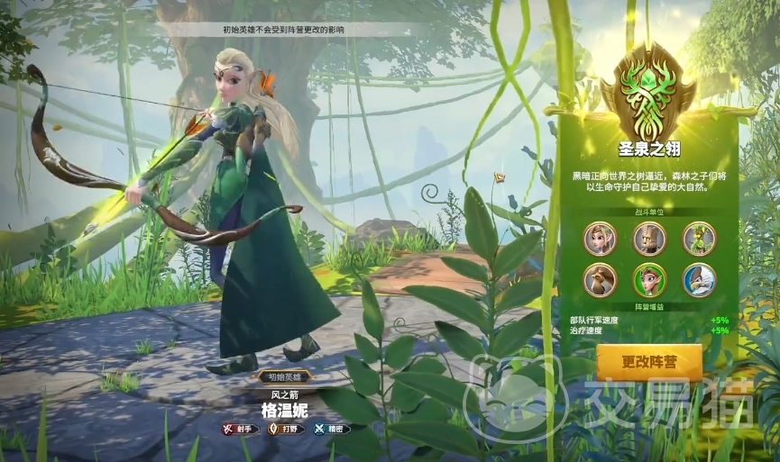 最后圣泉之翎代表着精灵职业,该阵营在战斗中有着极高的速度,而且精灵阵营不仅在移动速度上表现出色,攻击速度同样令人印象深刻,对于喜欢灵活作战和快节奏对战的玩家来说,是一个最好的选择,这种特性使得玩家能够在战场上快速穿梭,同时也能迅速撤离战斗,避免不必要的损失,圣泉之翎的代表英雄格温妮属于自然派系,她为部队提供的行军速度和治疗药剂生产速度的加成,进一步增强了精灵阵营的机动性和恢复能力。