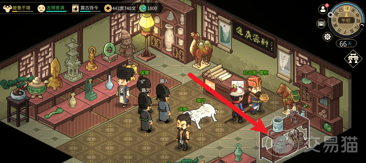 首先我们进入到游戏里面可以找到珍品阁这个地方,点击一下这个地方的系统就会自动寻路带你来到珍品阁的所在地,进入珍品阁后,你需要每天去和老板互动送礼来提高好感度。