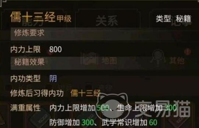 再来看一看儒十三经,这是一部经典的儒家内功心法,象征着儒家文化的深厚底蕴。要获得它,玩家需要加入儒圣馆,并参与三教镇魔的剧情任务。在任务中,玩家有机会在冰牢中与老魔头对话,并通过回忆与儒圣馆的战斗来触发剧情,最终获得儒十三经。如果玩家选择在老魔头逃脱后回儒圣馆复命,战胜敌人后,馆内长者蔡元常也会将这门心法传授给你。这部内功不仅提升内力,还赋予了角色高深的儒家力量,是一部全面的内功典籍。