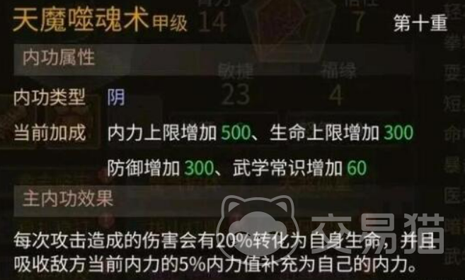 对于那些追求极致攻击力的玩家,天魔噬魂术是一个诱人的选择。这个内功心法需要玩家在繁华似锦楼的剧情中帮助完颜亮,随后在三教再次遇到他。如果玩家手持大日如来真经且未学习,再加上仁德值降至-80,便可以将真经交给完颜亮,换取天魔噬魂术。这部内功偏向于黑暗系,极具攻击性,适合那些追求快速击败敌人的少侠,不过,获取它的过程充满了阴谋与算计,真可谓是步步为营。