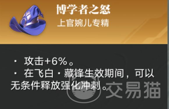 首先是”博学者之怒”这个专精,该专精首先可以让她的攻击力提高6%,在穿戴了这个装备之后,她在飞白·藏锋生效时间内,是可以无条件的释放强化冲刺效果的,而且在使用章草·横鳞时,在跃至高空之后,可以让造成的伤害增加;非常适合快速近身射手,同时也能快速脱离战场。
