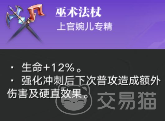 最后推荐”巫术法杖”,该装备可以让婉儿生命值增加12%,在强化冲刺之后,第一次普攻可以被强化,同时还会对敌人造成额外的损伤,同时还能让敌人硬直。