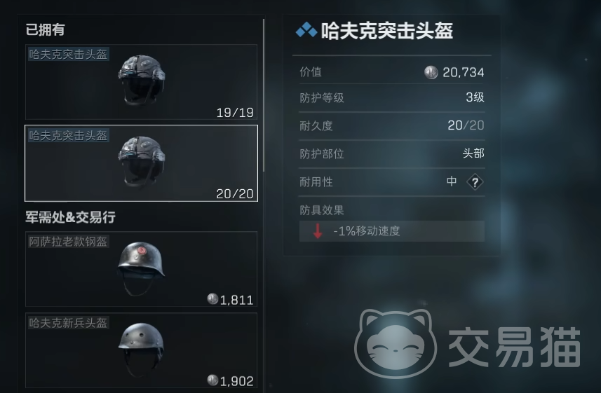 头盔的话目前推荐哈夫克突击头盔,这个头盔本身的难用性虽然只是中等,但是它可以有效的避免我们本身受到的爆头攻击,因为一些正常甚至是高手玩家在对人进行攻击的时候都有着下意识瞄准头部进行攻击的习惯,而这个头盔则是可以有效的避免爆头情况的发生。但是这个头盔也有一个缺点,那便是会减少玩家们1%的移动速度,这点玩家们需要适应。接下来介绍装甲,这个装甲便是游戏内的防弹衣。