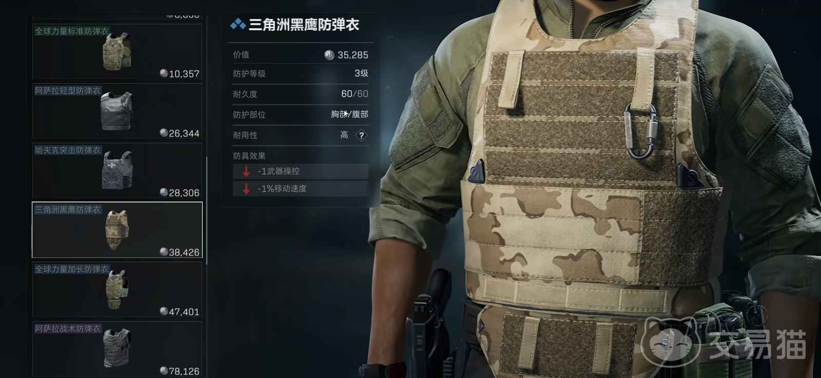 防弹衣玩家们依然是以3级护甲为主,因为我们进入游戏,就肯定有着要和其他敌人进行战斗的时候,而防弹衣则是会将我们受到的伤害给降低到最小。游戏里面三级防弹衣的种类还比较多,它们的特性是防御能力越高的,对于玩家们的限制就越高,一般的限制是武器的操控以及移动速度。比如一般的3级轻甲一般是减少1%的移动速度和武器操作。而重型的防弹衣则是会减少至少4%的移动速度和武器操作,至于具体的取舍则是需要看玩家们自身。