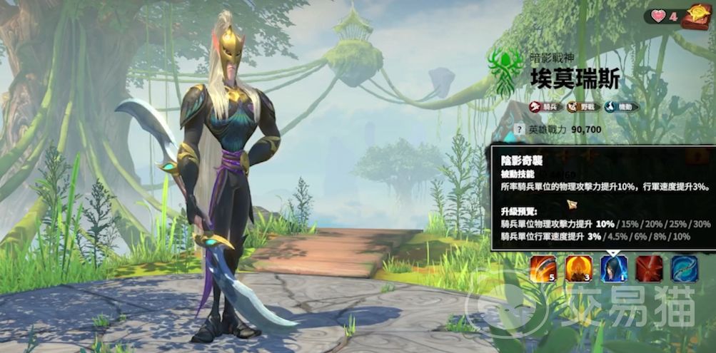 在这个游戏里,紫色橙色英雄是有4个技能的,都升到满级5级之后会解锁觉醒技能。这四个基础技能通常是由1个主动怒气技能和3个被动技能组成,但并不是获取英雄后就都全部解锁的。